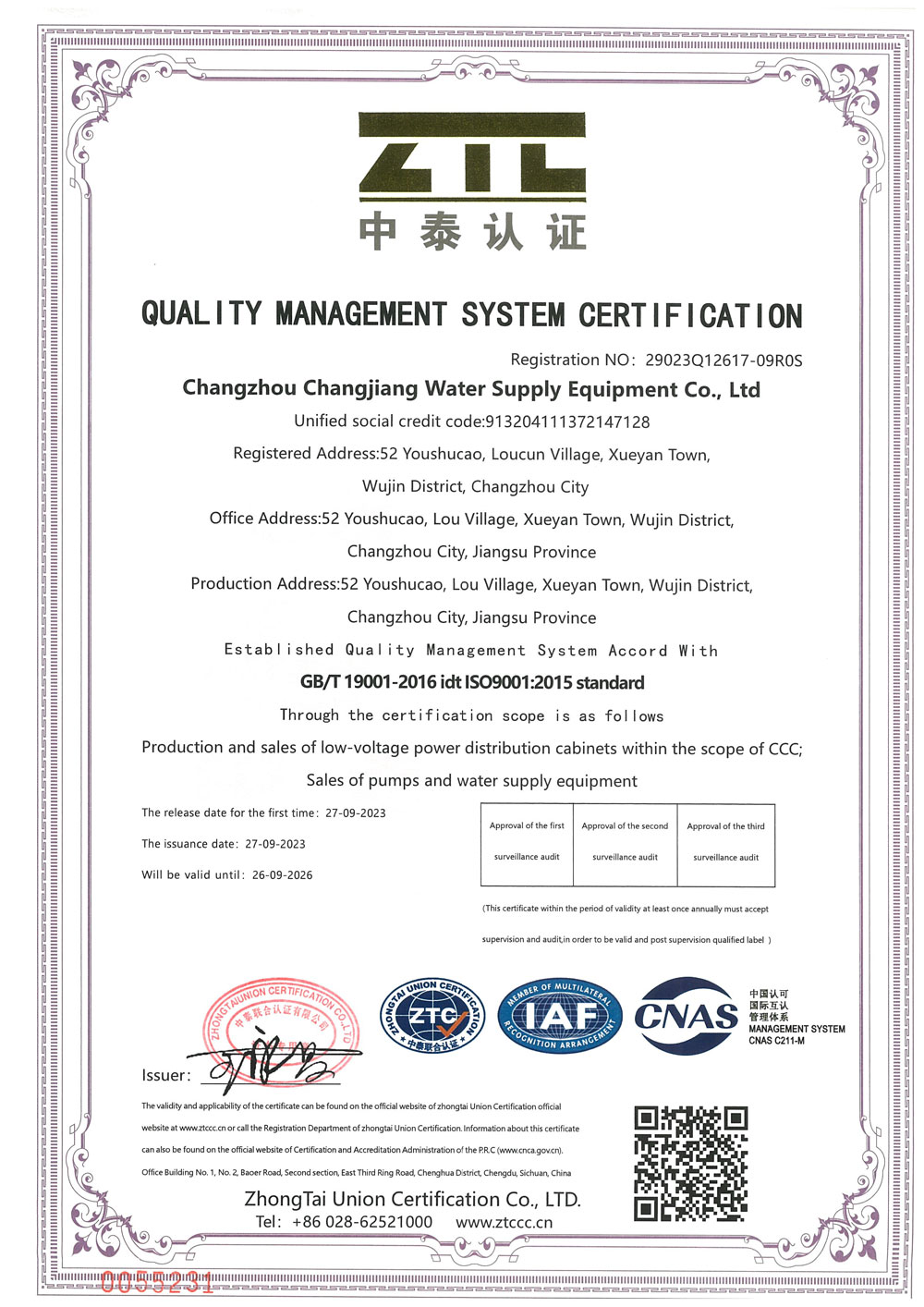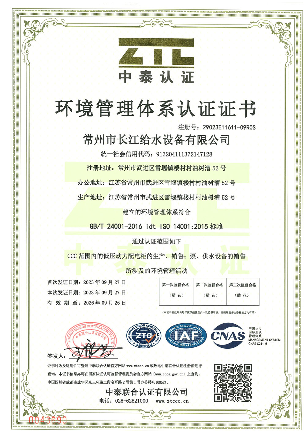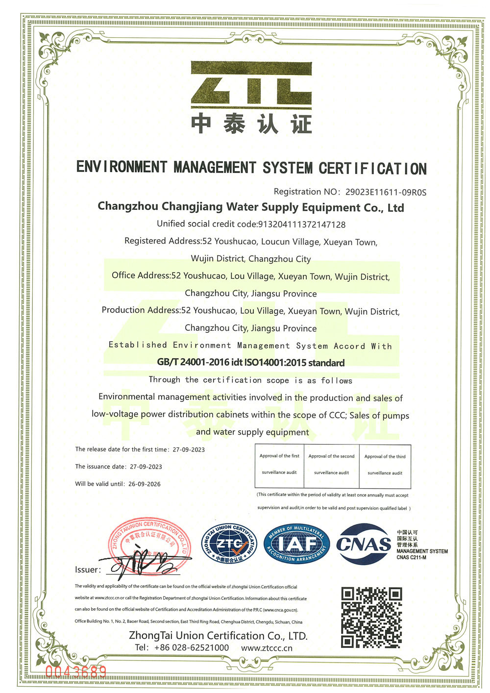 ООО «Чанцзян Водоснабжение Оборудование», город Чанчжоу